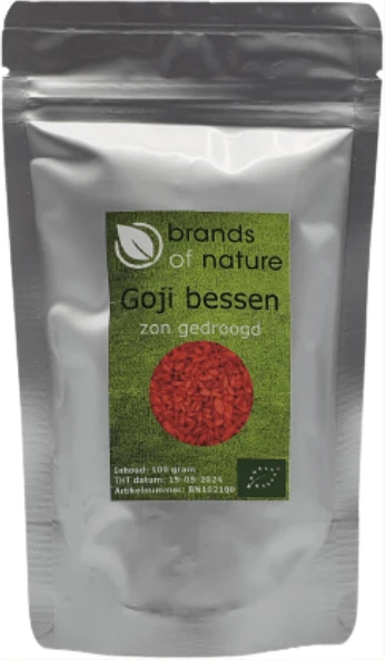 Brands of Nature Goji bessen BIO (Lycium Barbarum) groeien oorspronkelijk in Azië en komen voor in Mongolië, China en Tibet. Vanwege de zoete smaak worden de bessen verwerkt in thee, soep en shakes. Ze zijn natuurlijk ook heerlijk om zo te snacken.