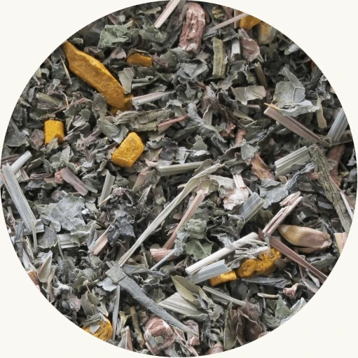 De basis van onze Detox Kurkuma thee is natuurlijk Kurkuma en pepermunt. Voor een goede werking zijn daar aan toegevoegd groene thee Sencha, brandnetel, citroengras en paardenbloemwortel.