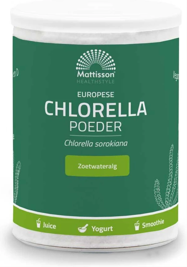 Deze Europese Chlorella Poeder bevat 100% zuivere natuurlijke Europese algen (Chlorella sorokiniana). Chlorella is een eencellige zoet water micro-alg.Chlorella is een microscopisch eencellige zoet water alg met een felgroene kleur, dankzij de chlorofyl die overvloedig aanwezig is in Chlorella. Chlorella is in 1890 ontdekt door de Nederlandse microbioloog M.W. Beijerinck. Bij miljoenen mensen wereldwijd is Chlorella een vast onderdeel van de dagelijkse voeding.