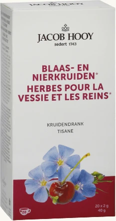 Jacob Hooy blaas en nier kruidendrank op basis van zure kers, heermoes en witte dovenetel ondersteunen de blaas- en nierfunctie.