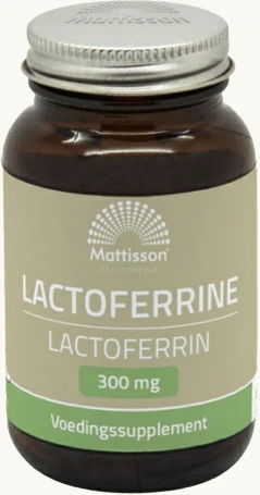 Lactoferrine is een lichaamseigen eiwit dat de eigenschap heeft ijzer aan zich te binden en te transporteren. We krijgen na de geboorte een grote hoeveelheid lactoferrine binnen dankzij het drinken van moedermelk. Hoewel ons lichaam zelf ook lactoferrine aanmaakt, kunnen factoren als bewerkte voeding en stress de lactoferrine reserves negatief beïnvloeden.
