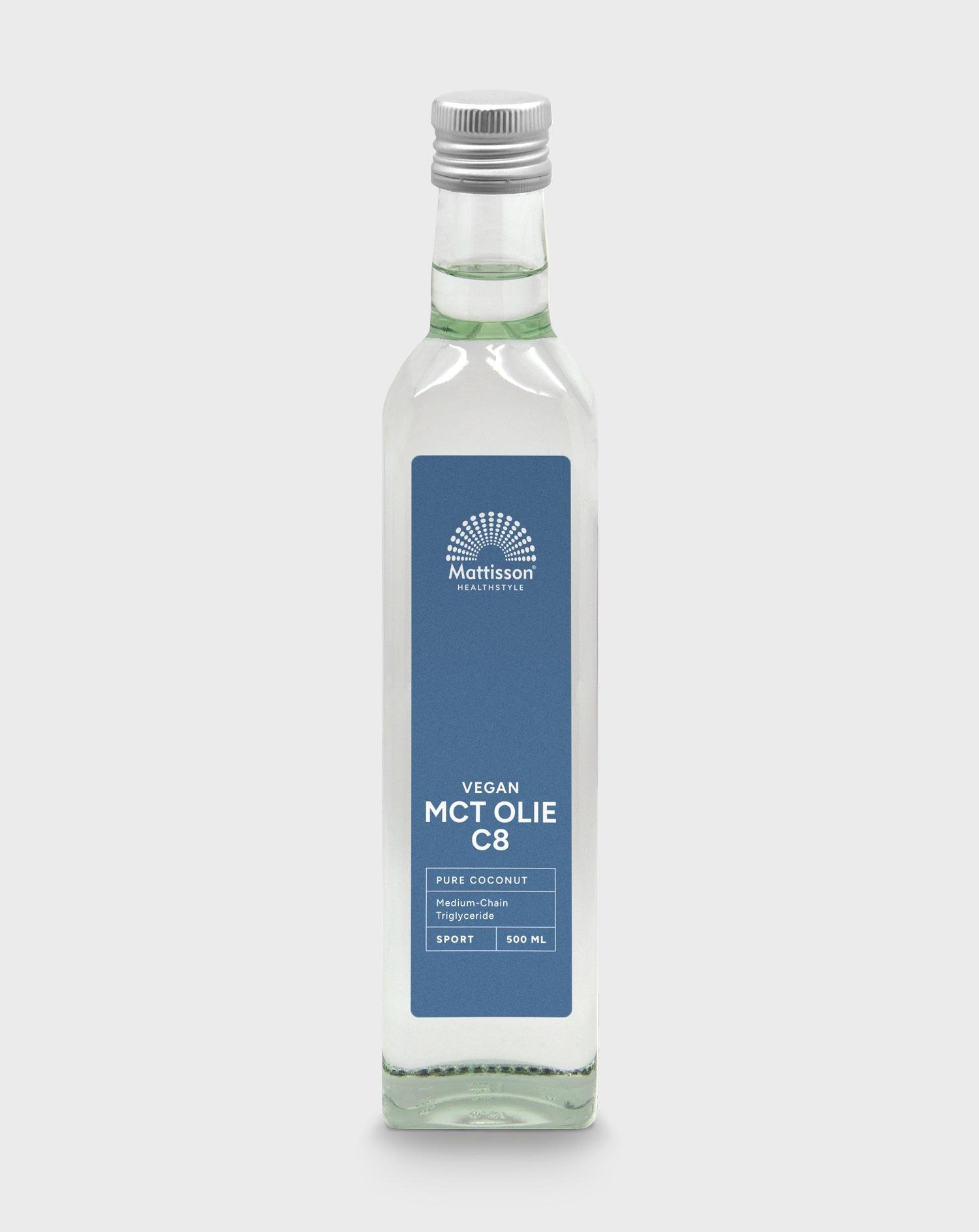 Deze MCT olie is gemaakt van 100% kokosolie en bestaat daardoor voor 99% uit caprylzuur/C8. MCT staat voor Medium-Chain Triglyceride en is een type vetzuur. Medium-Chain betekent dat de vetzuren een middellange keten hebben. MCT olie geeft snel energie en wordt niet opgeslagen als vet. Daarom wordt het ook door sporters gebruikt als supplement..