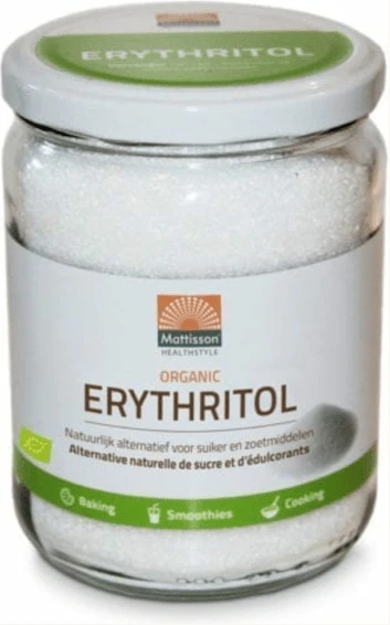 Erythritol is een natuurlijke zoetstof die van nature voorkomt in sommige paddenstoelen, vruchten (o.a. watermeloen, druif en peer) en gefermenteerde voeding zoals wijn, kaas en soja-saus. Erythritol is de enige natuurlijke polyol en is geproduceerd middels natuurlijke fermentatie en heeft ongeveer 70% van de zoetkracht van gewone suiker. Erythritol is een ideale vervanger van riet-, bietsuiker of andere zoetmiddelen. Geeft een heerlijke zoete smaak aan smoothies, yoghurt, tussendoortjes, dranken, ijs en andere (na)gerechten.