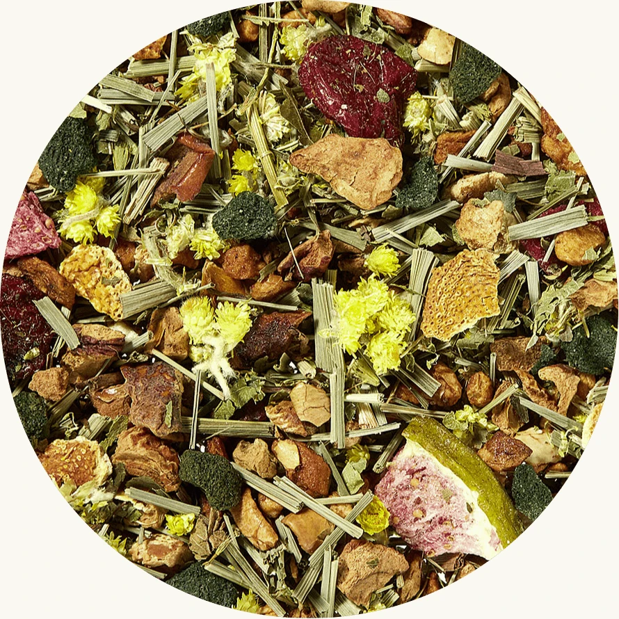 Fruitig en zoet, maar tegelijkertijd met een vleugje milde pittigheid, deze superblend met citroengras, cranberry, vijg en spirulina is een echte superthee.